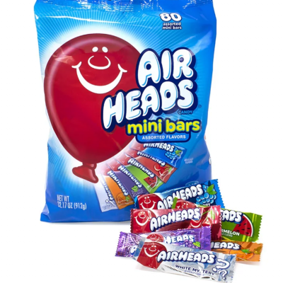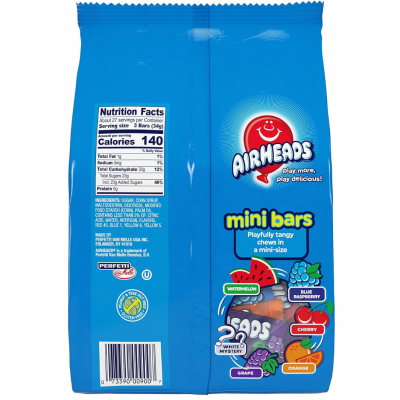 El paquete Airheads Mini Bars de 912g trae una gran variedad de mini  caramelos masticables que se estiran. Con una mezcla de sabores frutales como cereza, sandía, frambuesa azul, naranja, uva y un sabor misterioso. Es perfecto para poner en cualquier fiesta como cumpleaños, halloween y más. Si quieres disfrutar de estos mini bars ¿a qué esperas? Muchos sabores te esperan a que los pruebes y disfrutes de las diferentes experiencias que te da cada uno.
