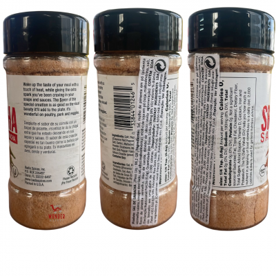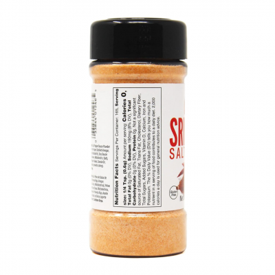 Ingredientes: Sal, salsa de pimienta en polvo [pimienta roja de cayena, vinagre destilado, sal, ajo), maltodextrina], salsa de soja en polvo (soja, maltodextrina, sal), copos de chile rojo, aceite de canola, dióxido de silicio (evita el apelmazamiento). Contiene soja.