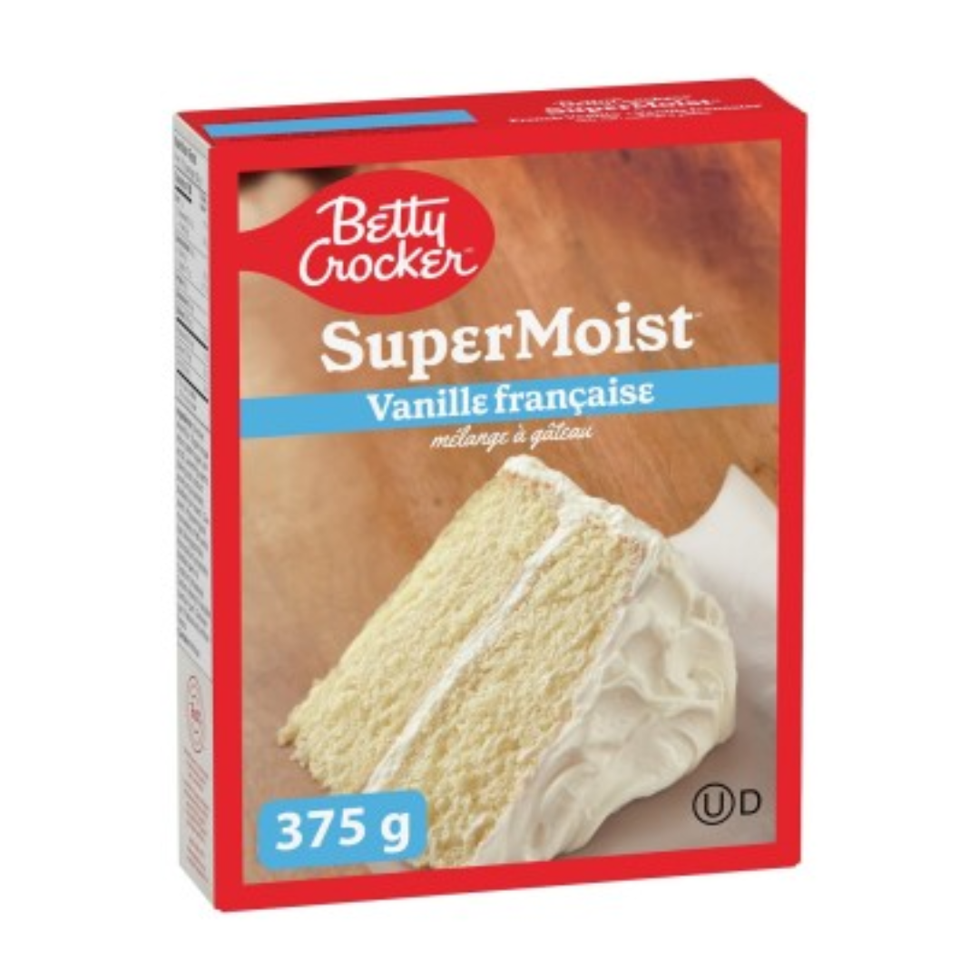 Betty Crocker Super Moist French Vanilla Cake Mix es una mezcla mágica para preparar un delicioso pastel de vainilla suave y esponjoso. Solo necesitas añadir agua, aceite y huevos, mezclar todo bien y hornear. En poco tiempo, tendrás un pastel con un sabor dulce y un aroma que llenará toda la cocina. Puedes disfrutarlo tal cual o decorarlo con glaseado.