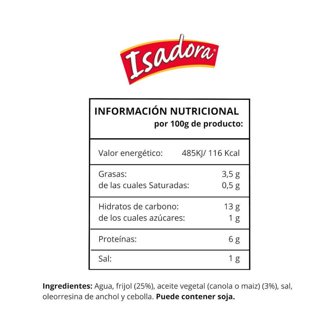 Los Frijoles Refritos Bayos Isadora 430gr van perfectos en tacos, tostadas o como acompañamiento de carnes y huevos. Están hechos con frijoles bayos, aceite y sal, manteniendo un estilo casero bastante conseguido. Son una buena opción si buscas algo rápido que además llene y aporte proteína vegetal.