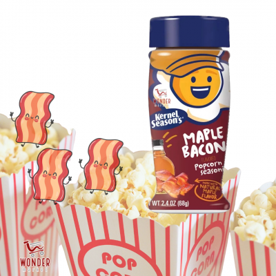 Verdadero sabor a bacon en un instante. Simplemente agite nuestro condimento de maíz con bacon.