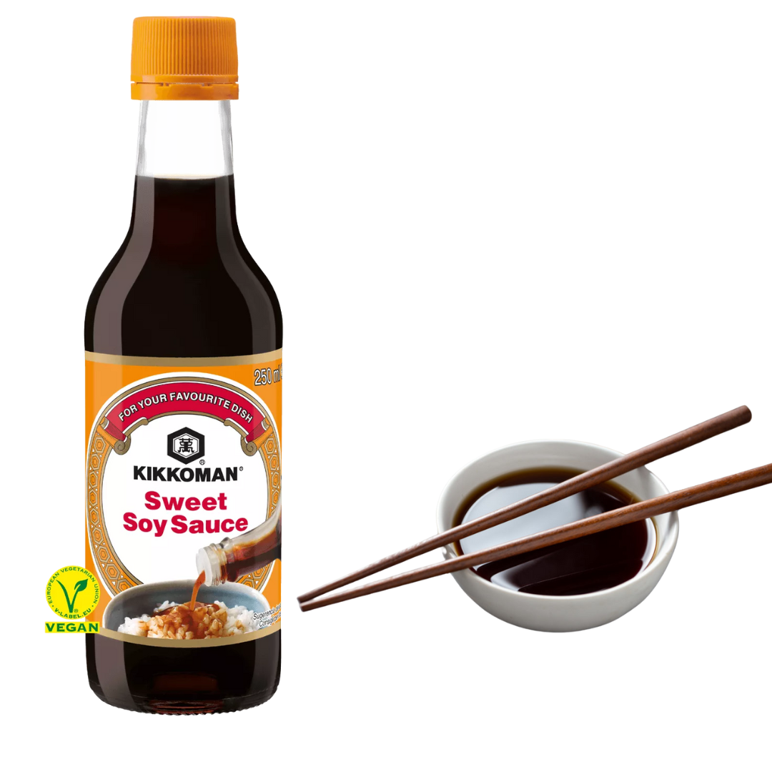 A diferencia de la salsa de soja tradicional, que es más salada y umami, la versión dulce tiene un toque de azúcar que suaviza el sabor salado, creando una mezcla equilibrada y ligeramente dulce.