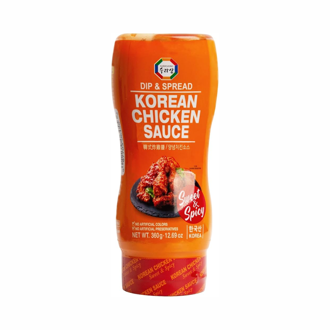 La Korean Chicken Sauce Surasang 360 g es una salsa inspirada en la cocina coreana, diseñada para acompañar y preparar platos de pollo. Su textura espesa permite una aplicación uniforme, facilitando su uso en distintas elaboraciones.