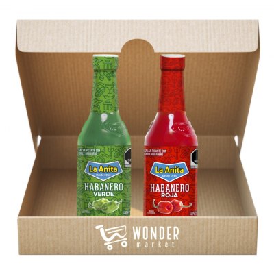 Pack de salsas habanero roja y verde La Anita, ideal para los amantes del picante auténtico. Estas salsas están elaboradas con ingredientes de alta calidad, incluyendo chile habanero fresco, vinagre, sal, ajo, especias y condimentos naturales que realzan el sabor de tus comidas. La salsa habanero roja ofrece un picor intenso con un toque ahumado, perfecta para carnes, tacos y guisos, mientras que la salsa habanero verde aporta frescura y un sabor vibrante, ideal para mariscos, pollo y botanas. Este pack es perfecto para darle un toque único a tus platillos, disfrutando del sabor tradicional de la cocina mexicana.