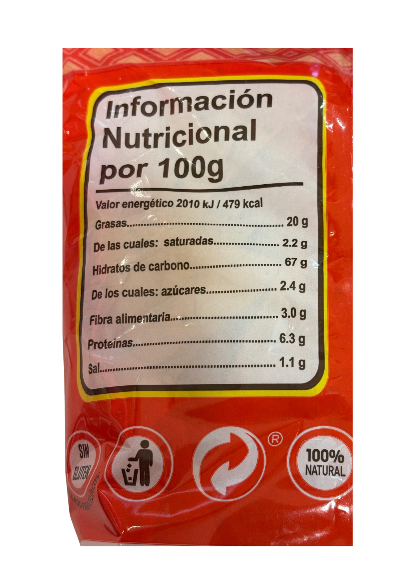 INGREDIENTES: Maíz amarillo en grano (75%), aceite vegetal (girasol y girasol alto oleico) y sal marina.