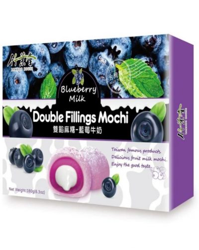 Ingredientes: Maltosa, azúcar, arroz glutinoso en polvo, aceite de palma, jugo de arándano, espesantes (E440, E1442), colorantes (E129, E133), edulcorantes E420, aroma, conservantes E202.