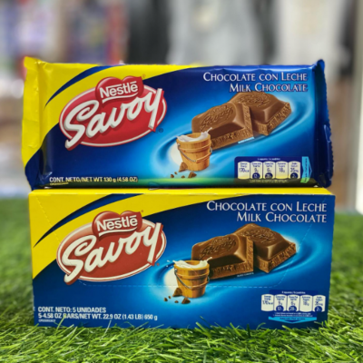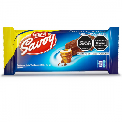 Savoy Chocolate con Leche! Es una marca icónica de chocolates originaria de Venezuela y muy popular en el país. Está fabricado por Nestlé y es conocido por su textura cremosa y su sabor característico de chocolate con leche.