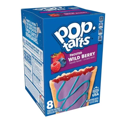 Embalaje de cartón para alimentos, hermético y resistente, de Pop Tarts Frosted Wild Berry, galletas llenas de crema de frutas del bosque, en formato de 384 gramos. Esta opción incluye ocho galletas Pop Tarts con relleno de crema de frutas del bosque. ¿Quién sabe qué pensarán tus amigos cuando los vean… para seguir cultivando tu sueño americano no puedes dejar de agregar este artículo a tu carrito, así como todas las otras variantes de Pop Tarts disponibles en mi tienda