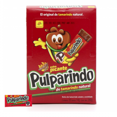 Disfruta El Pulparindo Extra Picante es un dulce popular en México. El Pulparindo Extra Picante es un dulce de tamarindo relleno de pulpa de tamarindo con sal y chile. Es conocido por su sabor acidito y picante. Si no te bastaba con uno, esta caja contiene 20 unidades para que no te quedes con las ganas de más. Puedes compartir con amigos o familiares o disfrutar de cada uno de ellos tu solo. Sumérgete en Wondermaket y mira los diferentes productos de Pulparindo que tenemos.