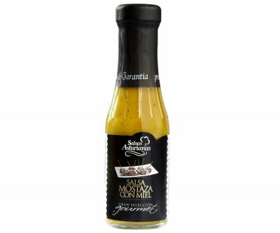 Ingredientes: Miel (42,98%), mostaza elaborada (23,5%) (agua, vinagre, mostaza, azúcares, sal, especias y extracto de especias), agua, vinagre de alcohol, almidón modificado de patata, azúcar, semillas de mostaza (0,8%), sal y espesante: goma xantana.