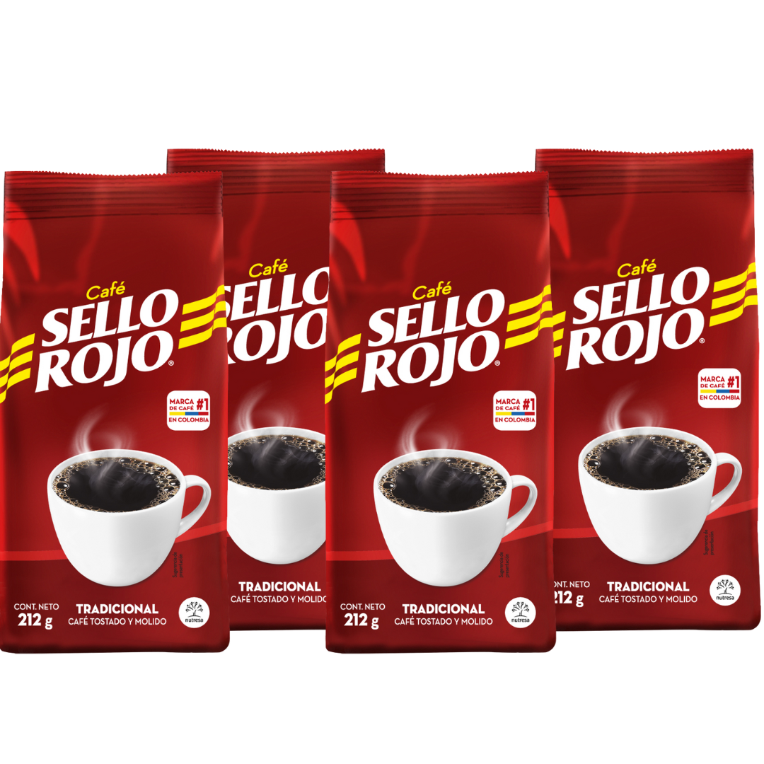 Sello Rojo es un café de origen colombiano de intenso sabor y aroma, de alto cuerpo y rendimiento, de tostado oscuro y molido fino.