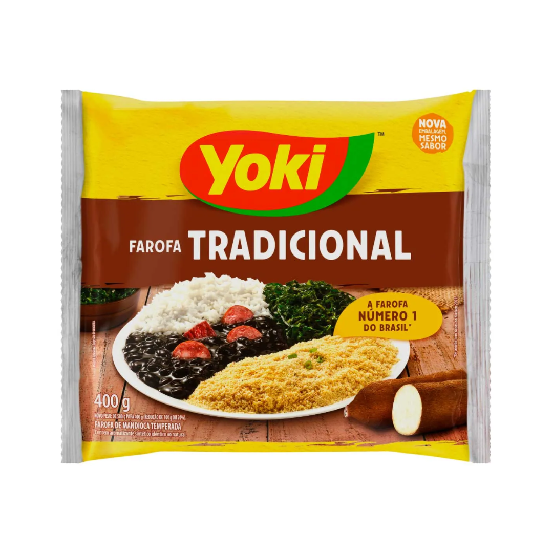 La Yoki Farofa Tradicional 400 g es un acompañante clásico de la cocina brasileña y uno de los productos más representativos en las mesas del país. Elaborada a base de harina de mandioca tostada, ofrece un sabor suave, textura crujiente y un aroma característico que combina perfectamente con todo tipo de platos. Es un ingrediente versátil, práctico y lleno de tradición, ideal para quienes disfrutan de sabores auténticos y caseros.